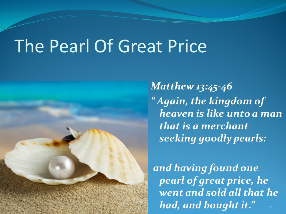 Matthew 13:45-46 Again, the kingdom of heaven is like unto a man that is a merchant seeking goodly pearls: and having found one pearl of great price, he went and sold all that he had, and bought it.